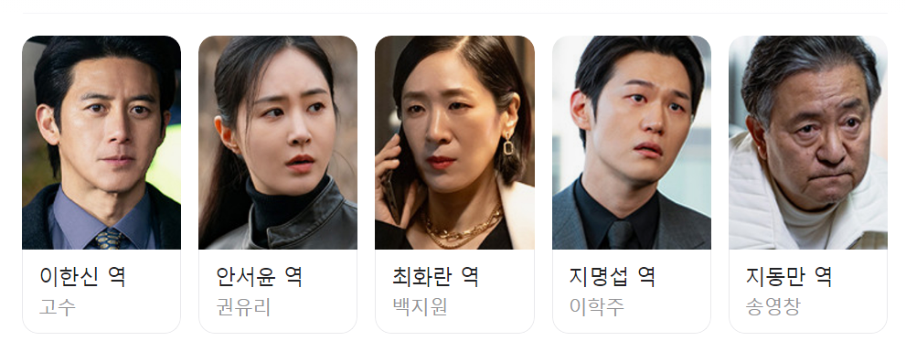 - 주연: 고수 (이한신 역), 권유리 (안서윤 역), 백지원 (최화란 역), 이학주 (지명섭 역)
