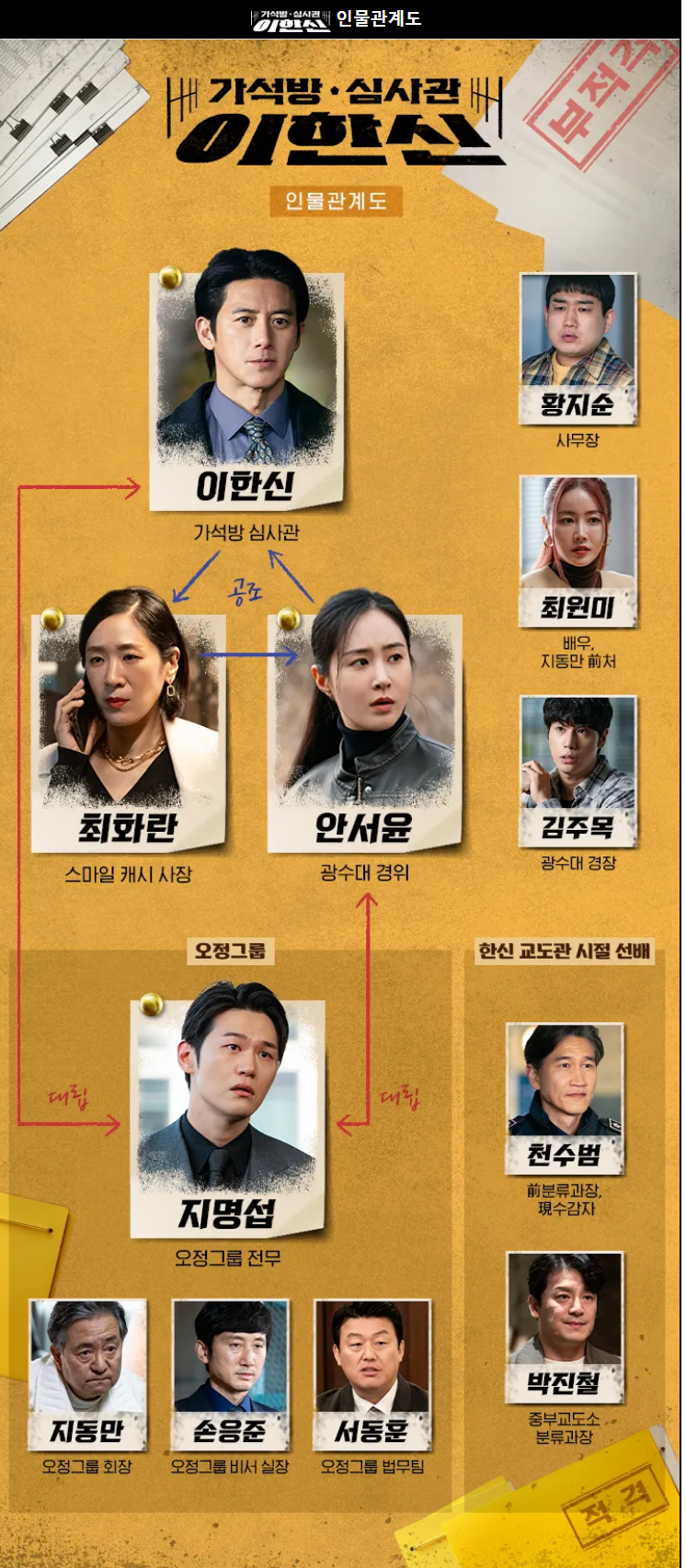 고수와 권유리 배우가 함께 한다는 것만으로도 기대가 되는 드라마인데요. 가석방 심사관 이한신의 등장인물은 아래와 같습니다.