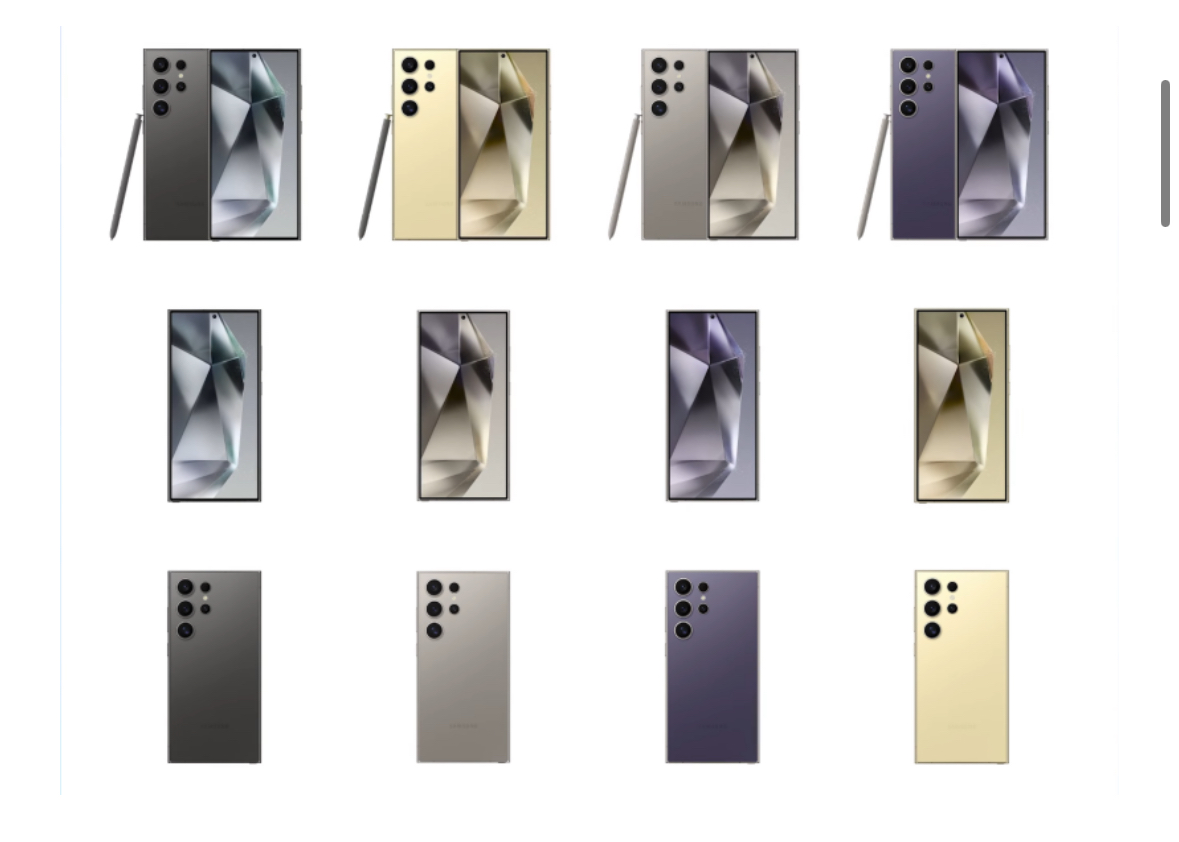 | 갤럭시 S24 울트라 | 티타늄 블랙, 티타늄 그레이, 티타늄 바이올렛, 티타늄 옐로우 |