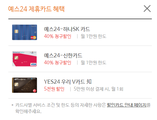 - 미리 예스24 회원 가입 및 카드 정보 입력하기