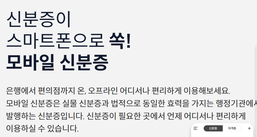 - 분실 위험 감소: 번거롭게 주민등록증을 가지고 다닐 것 없이 스마트폰 하나면 분실 위험이 없어집니다.