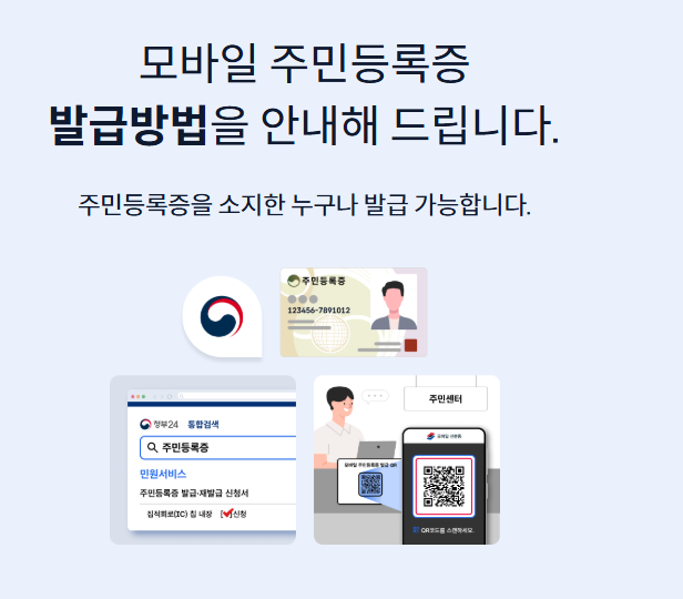 - 신청 방법: 정부 24 사이트에서 IC주민등록증 신청 (주민센터 방문도 가능)