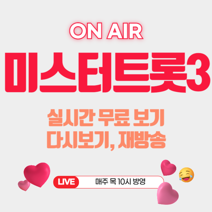 미스터트롯3 재방송 시간이 언제인지 궁금하시나요? 관심이 많은 프로그램인 만큼 재방송도 자주 하는데요. 아래에서 재방송 정보 보시고 편하게 즐기시기 바랍니다.