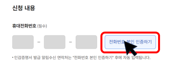 5) 본인 인증을 통해 전화번호를 입력합니다. 여기서 간편 인증을 하지 않은 경우에 휴대폰 번호 인증을 통해 휴대폰 번호를 입력하셔야 합니다.