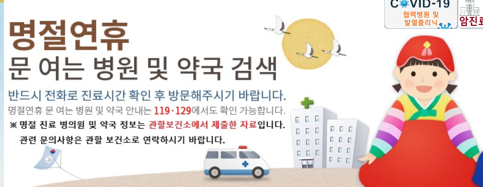 추석 명절에 아프면 정말 병원 찾는 게 걱정이시죠? 그래서 정부에서 추석 연휴 동안에 진료 공백을 최소화하기 위해서 연휴 동안 병원, 약국을 운영하도록 제도를 마련했습니다.