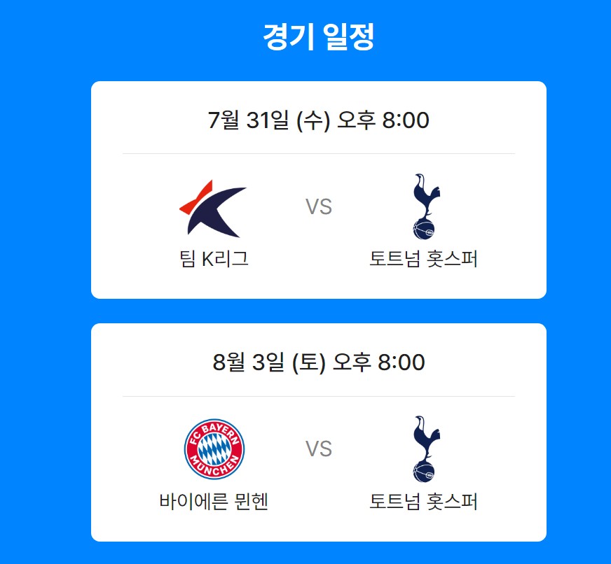 | 바이에른 뮌헨 vs 토트넘 훗스퍼 | 8월 3일 토요일 오후 8시~ |