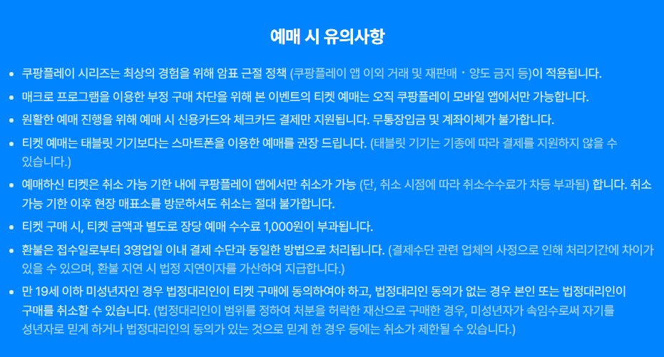 - 쿠팡플레이 모바일 앱에서만 티켓 예매가 가능합니다