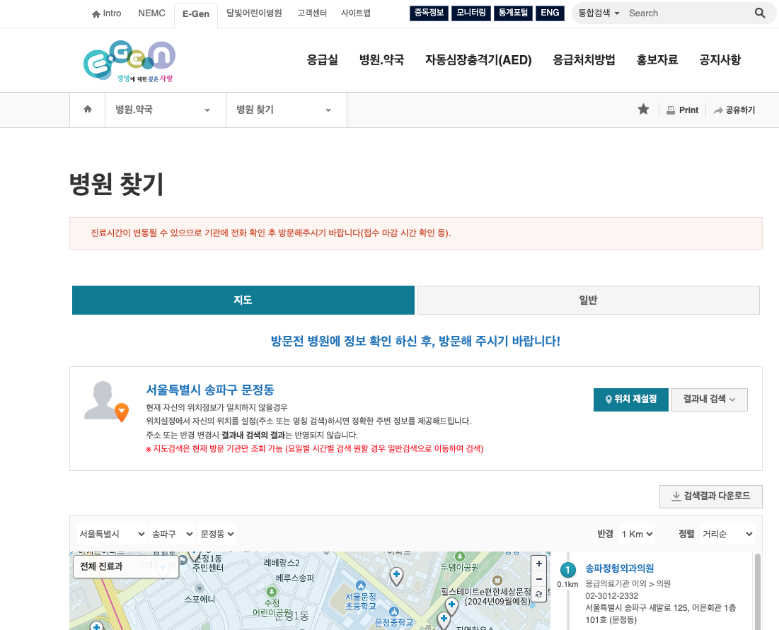 1. 휴일(설/추석연휴) 진료 병원, 약국 찾기