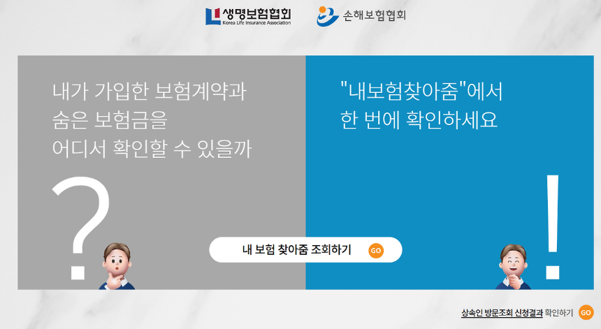 '내보험 찾아줌'은 생명보험협회와 손해보험협회가 공동으로 제공하는 서비스로써, 내가 가입한 보험 정보를 한 번에 조회할 수 있도록 도와주는 안전한 플랫폼입니다.