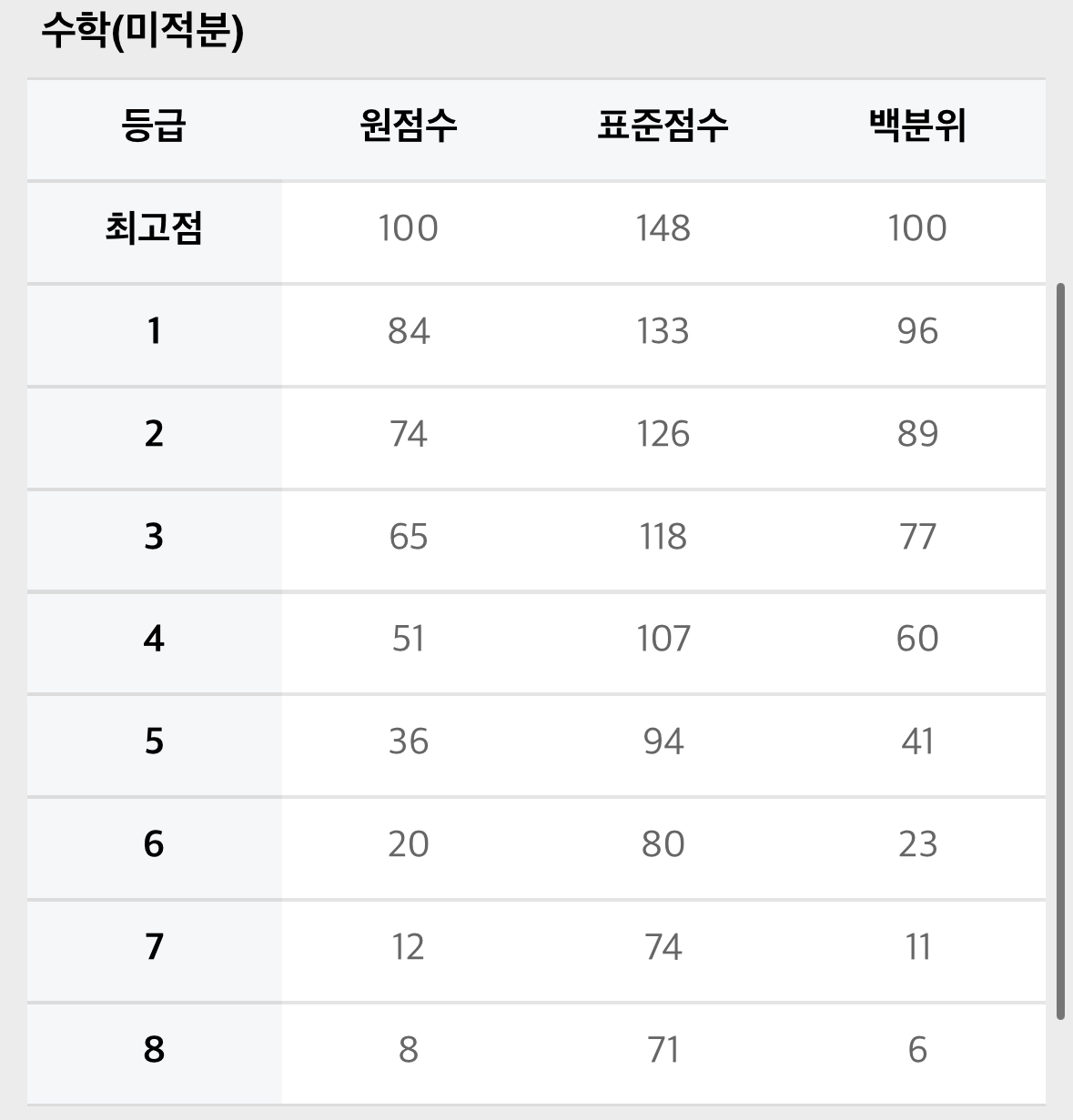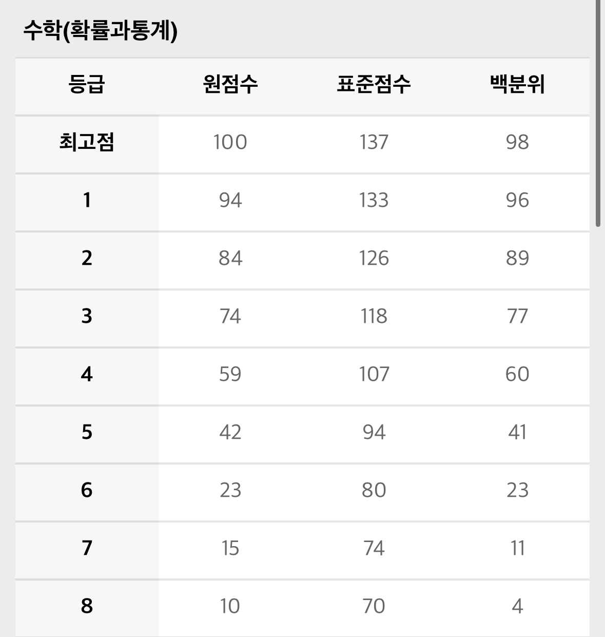 1. 2024년 수능 확정 등급컷