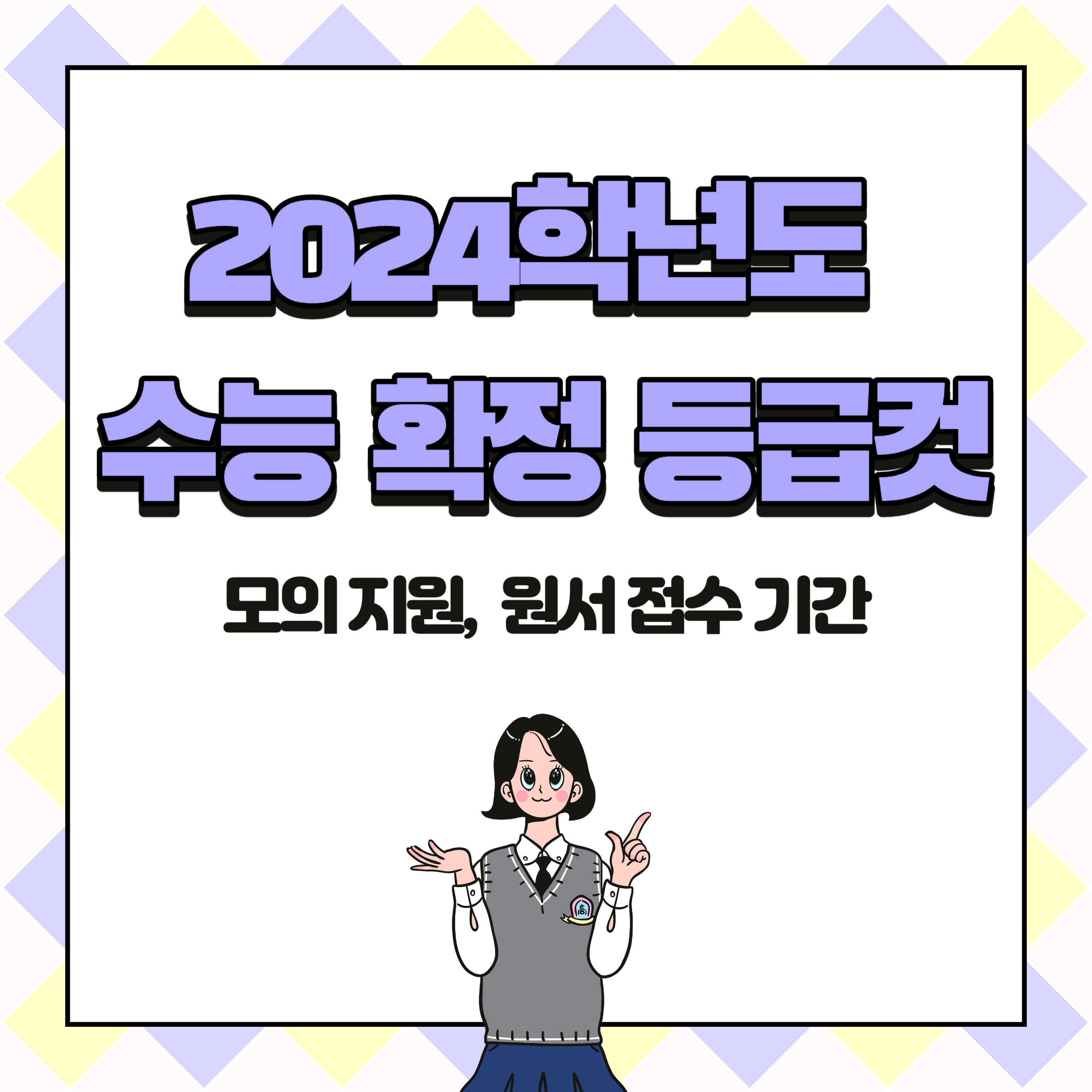 2024학년도 수능 확정 등급컷을 정리해 보면서 더욱더 이번 불수능에 고생한 학생분들께 박수를 보내고 싶습니다. 고생 정말 많으셨고 대학이라는 사회의 첫걸음에 후회 없는 선택을 하셔서 멋진 대학생활 하시길 바라겠습니다.