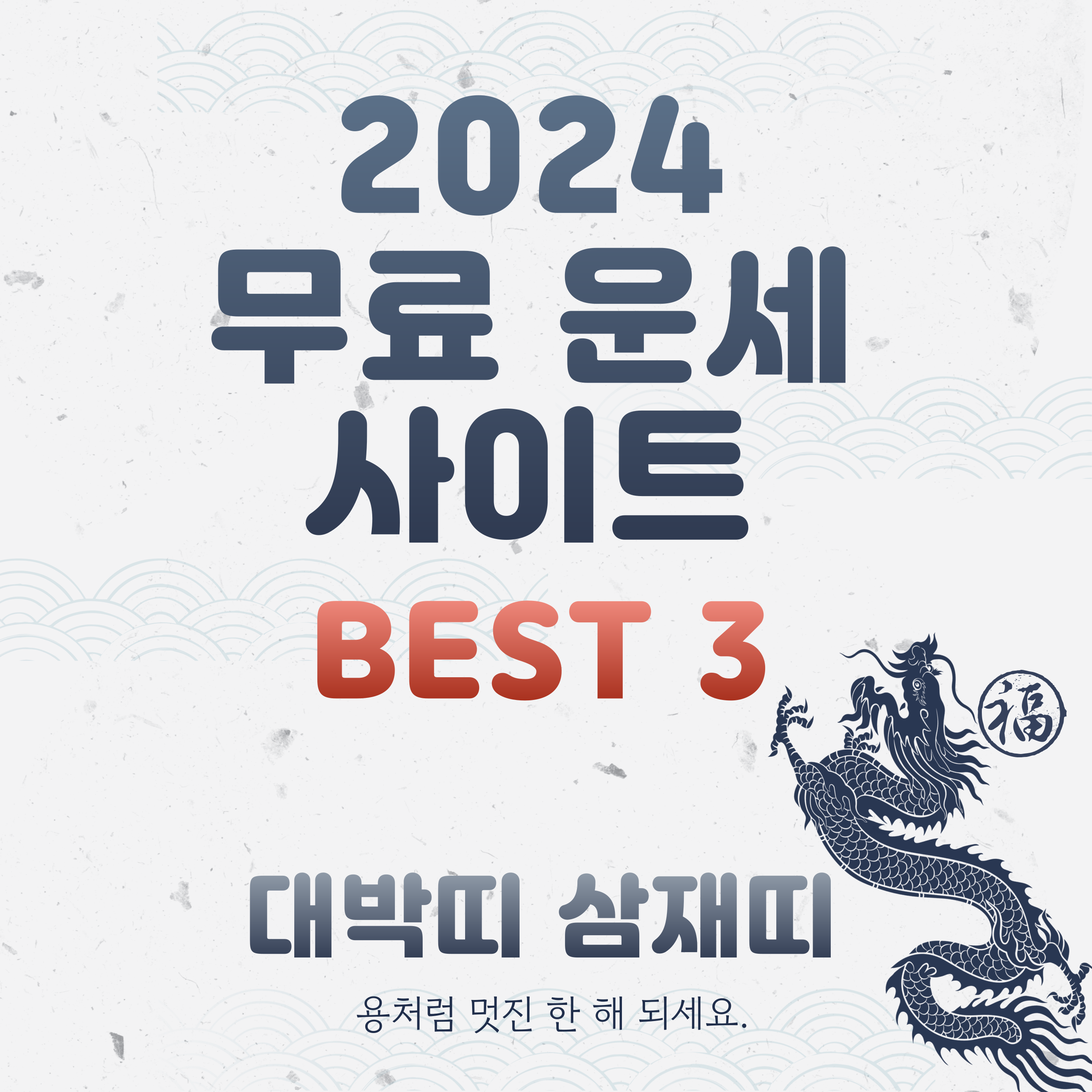 이렇게 다가오는 2024년을 준비하며 신년 운세를 보기에 가장 좋은 사이트를 소개해드렸습니다. 많은 운세 사이트가 있지만 가장 신뢰도가 높고 자세하게 나오는 사이트만으로 글에 담아보았습니다. 운세를 보시고 좋은 것은 그대로 다 가져가지고 나쁜 것은 내 것이 되지 않도록 더욱더 주의하며 삶을 살아가시길 바라겠습니다. 새해 복 많이 많이 받으세요.