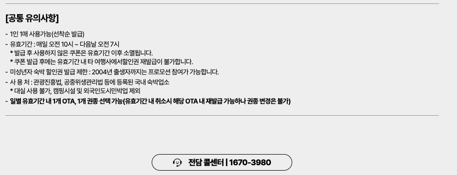 | 숙박 할인권 발급 시간 | 매일 오전 10시부터 선착순 발급 |