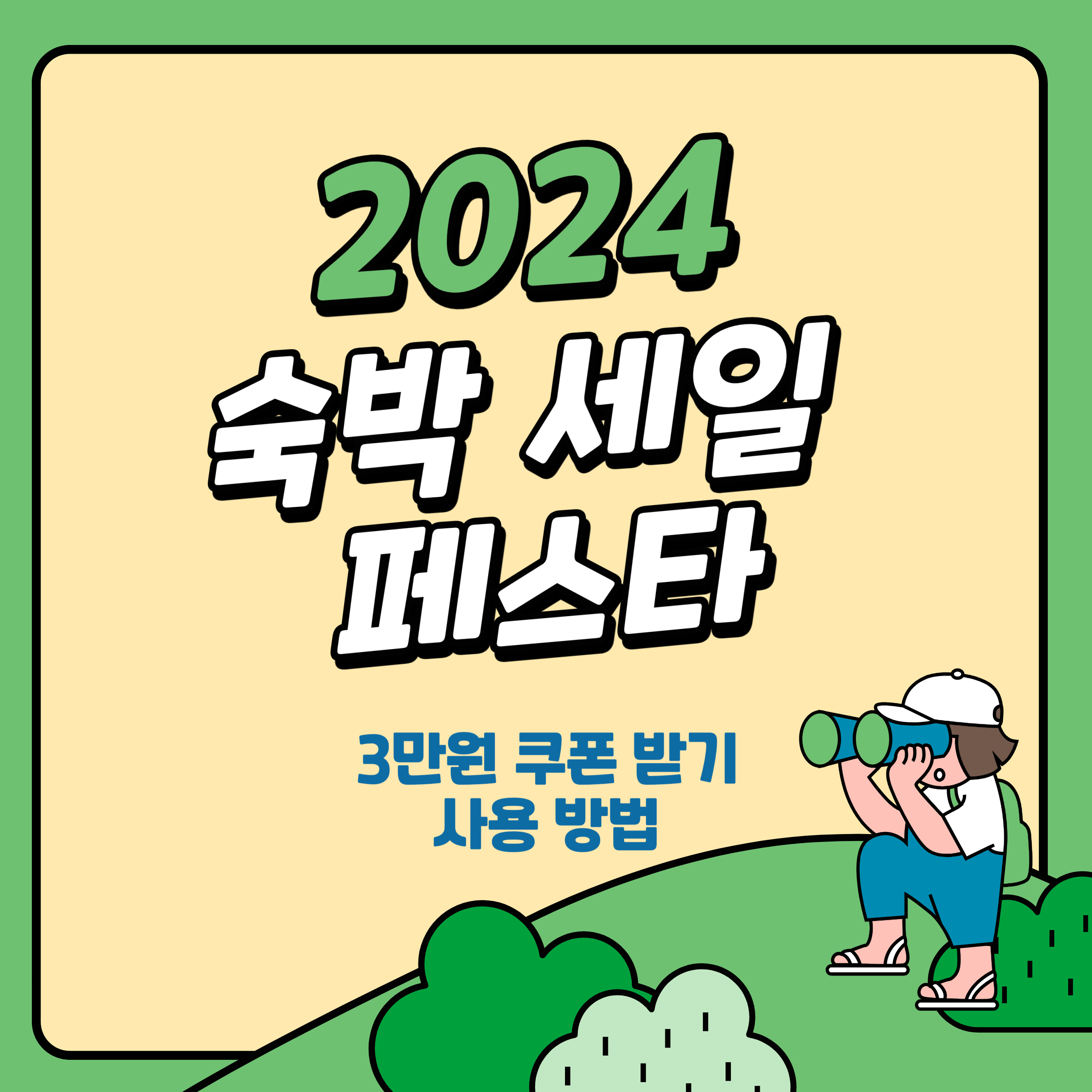여행 참 좋아하시죠? 그런데 참 숙박비가 많이 부담이 되죠. 이번 6월에 숙박비를 무료로 3만 원 쿠폰을 받아 더욱더 저렴하게 여행을 즐길 수 있는 혜택이 있습니다. 바로 2024 숙박 세일 페스타인데요.