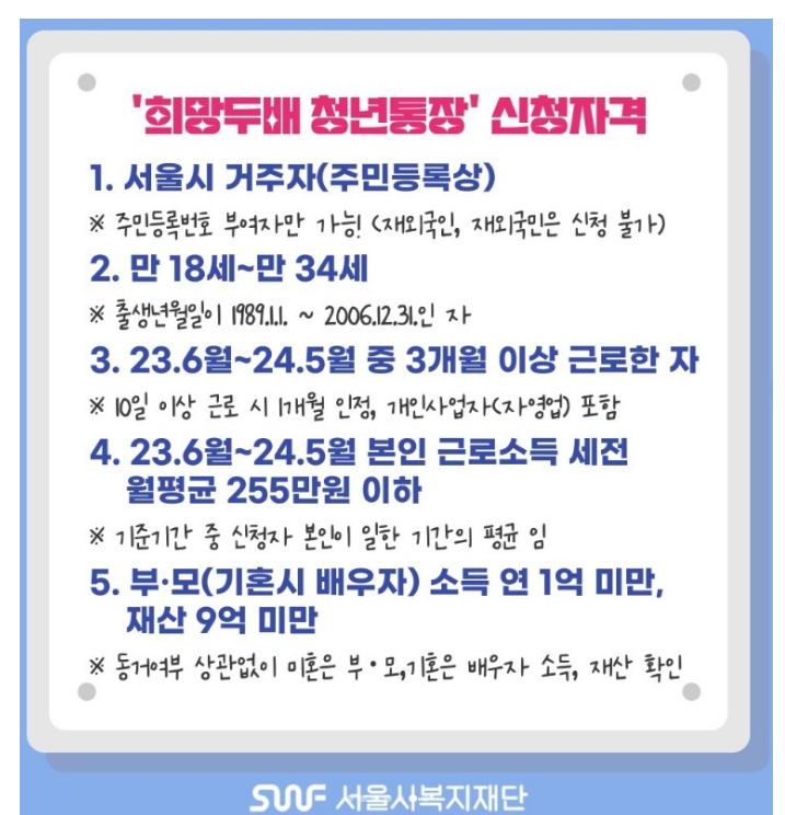 2. 희망두배 청년통장 신청자격