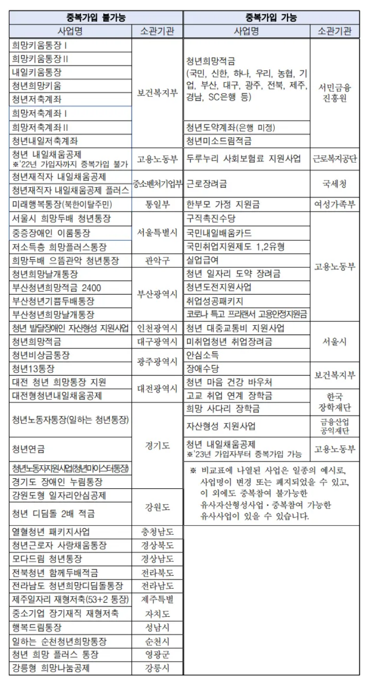 - 유사 자산 형성지원 사업에 참여한 적이 있는 자 (표 참고)