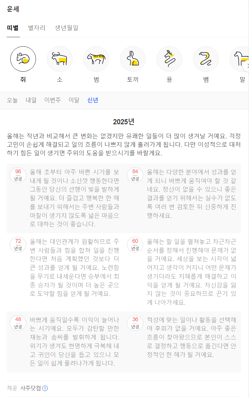 1. 2025년 네이버 무료 운세