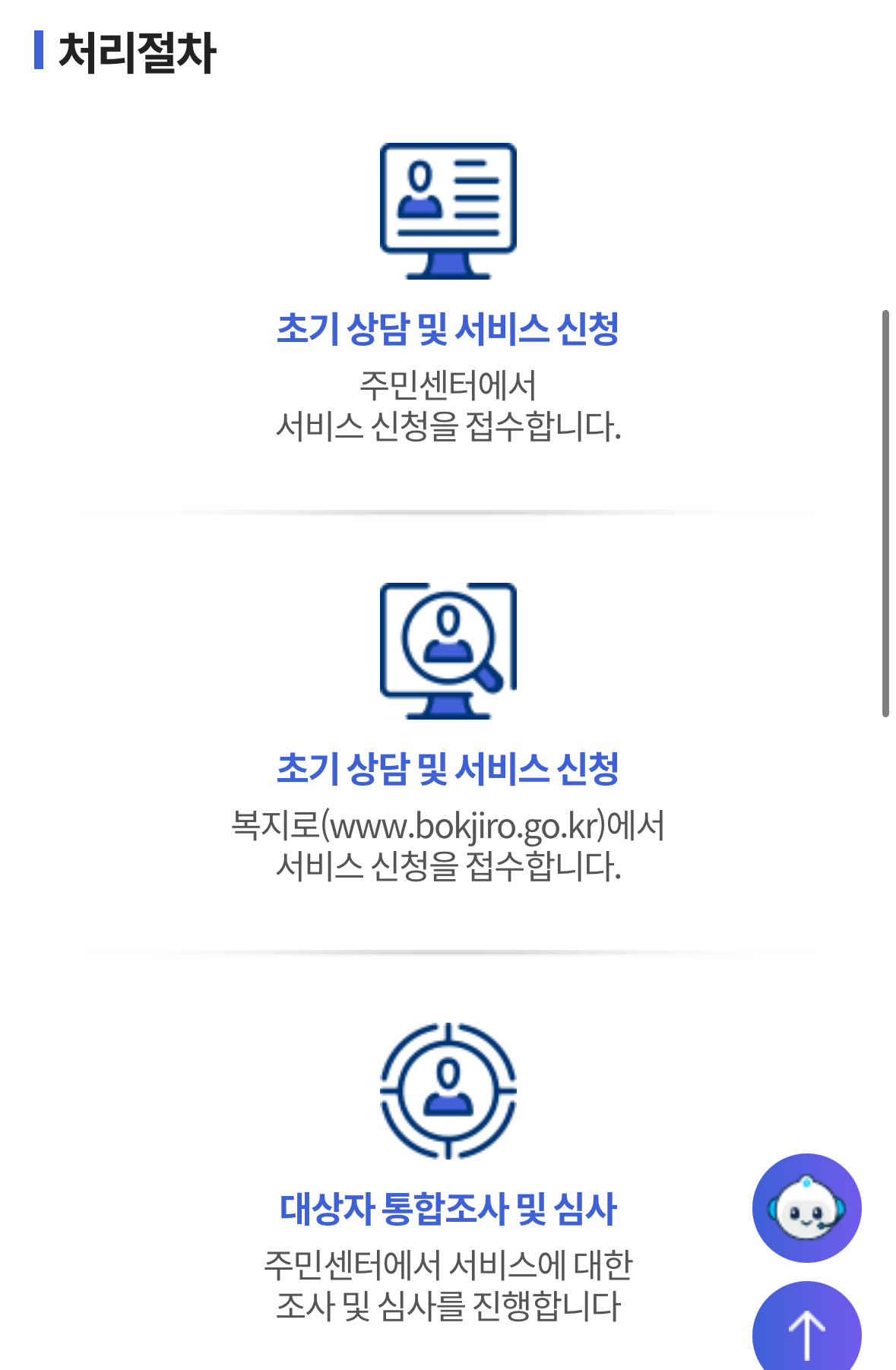 - 위 버튼을 통해서 복지로 (www.bokjiro.go.kr) 온라인 신청 또는 근처 읍면동 주민센터 방문 접수